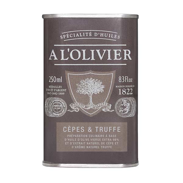 Cèpes & truffe - Préparation à l'huile d'olive vierge extra 98%, d'extrait naturel de cèpe et d'arôme naturel - Bidon brun de 25cl et 50cl