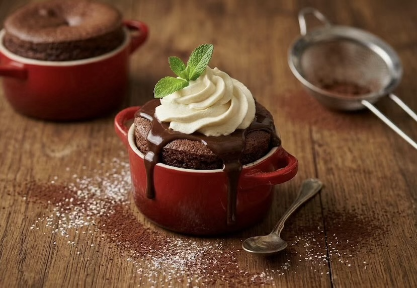 Soufflés chocolat et crème mascarpone à l’huile de menthe poivrée